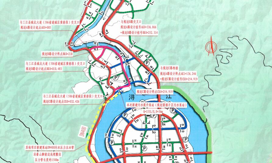該項(xiàng)目位于柳州市三江侗族自治縣黃排片區(qū),結(jié)合規(guī)劃區(qū)發(fā)展的功能需求,圍繞著三江縣新三江中學(xué)學(xué)校地塊,規(guī)劃形成“一帶、一環(huán)、四心、五軸、七片”的城市結(jié)構(gòu)體系與“山、水、城、田、人”相融的組團(tuán)城市格局。“一帶”指自東向西貫穿城區(qū)的潯江風(fēng)情帶,連接縣城多個(gè)片區(qū);“一環(huán)”是由潯江大道-侗鄉(xiāng)大道-河西老城西環(huán)線-宜陽(yáng)大道構(gòu)成的城市環(huán)線;“四心”分別是指潯江半島行政文體中心、河?xùn)|侗鄉(xiāng)民族文化中心、大洲島旅游活動(dòng)中心和火車南站客運(yùn)樞紐中心;“五軸”分別是指連接到城市環(huán)線的桂三高速公路連接線、209 國(guó)道周坪段、321 國(guó)道周坪段、龍吉大道和三柳高速公路程村連接線;“七片”則分別是指黃排片區(qū)、河西老城片區(qū)、河?xùn)|新城片區(qū)(含潯江半島)、周坪片區(qū)、大洲島片區(qū)、龍吉片區(qū)和火車南站片區(qū)。