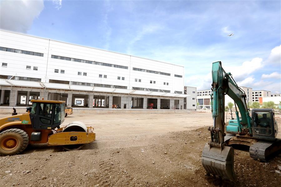 該項目負責人莫劍生介紹,倉儲配一體庫主要建設(shè)6棟庫房,目前項目主體基本建成,正緊張有序收尾。為了加快項目進度,項目部在做好防暑降溫、安全施工等保障措施的同時,采取多班組、多工種在不同的庫房交叉作業(yè),目前工地上有七八個班組在施工,施工內(nèi)容包括外立面、擋雨棚、通風管、地面硬化施工等。