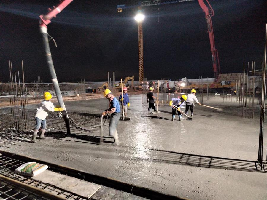 面對高溫酷暑,北岸苑項目部安排技術(shù)人員輪班到現(xiàn)場進行巡查、監(jiān)督、指導(dǎo),認真做好防暑降溫、安全施工、后勤保障等工作,同時項目部還增加人力物力、加班加點搶抓施工進度。當前每天約有200人的鋼筋班組、木工班組和混凝土班組在現(xiàn)場有序進行安裝模板、搭設(shè)支架、綁扎鋼筋、推動混凝土等工作。截至目前,地塊一(1-6#)土方挖運完成90%;地塊二(7-14#)主樓樁基礎(chǔ)全部施工完成,地下室部分結(jié)構(gòu)施工完成50%。