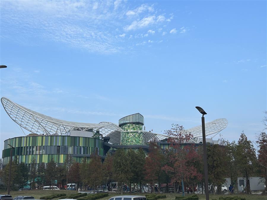 據(jù)悉,該項目位于江蘇省東臺市黃海森林公園內,由東區(qū)、西區(qū)及戶外休息區(qū)三部分組成,總建筑面積約1.8萬平方米,建筑高度22.77米,最大單跨跨度為45米。