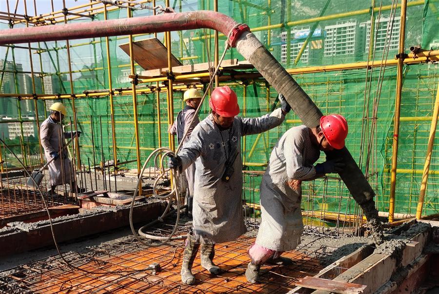河池·澳門國(guó)際城四期工程位于河池市金城江區(qū)百旺路10號(hào),總建筑面積13.76萬平方米,由5個(gè)單體建筑、地庫,以及配套設(shè)施工程等部分構(gòu)成。目前,3個(gè)單體建筑均已施工至結(jié)構(gòu)層8層梁板砼澆筑,項(xiàng)目累計(jì)完成總工程量的12.8%。