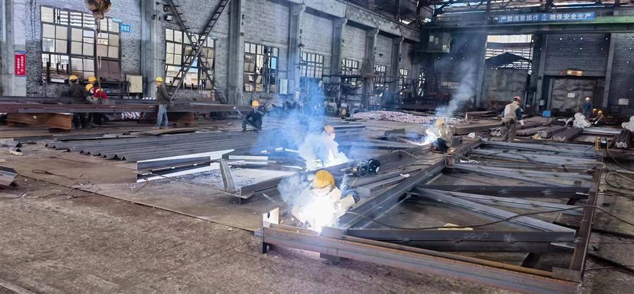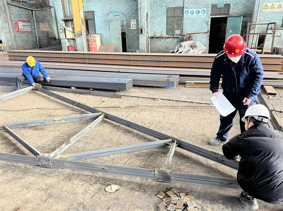 廣西柳鋼環(huán)保公司鋼渣廠(chǎng)1#廠(chǎng)房氣窗及3-11#柱屋面鋼結(jié)構(gòu)與彩瓦更換工程鋼結(jié)構(gòu)預(yù)制加工現(xiàn)場(chǎng),焊接“火花”不斷,工人作業(yè)有序。據(jù)了解該項(xiàng)目屬于檢修項(xiàng)目,工期緊,需提前加工預(yù)制完后,才能拆除現(xiàn)場(chǎng)舊屋架,現(xiàn)場(chǎng)生產(chǎn)環(huán)境高溫腐蝕嚴(yán)重,為了確保項(xiàng)目施工安全,施工班組每天進(jìn)場(chǎng)前都要進(jìn)行安全交底。當(dāng)前,該項(xiàng)目完成5片屋架組隊(duì),2跨天窗主體鋼框架,所有構(gòu)件制作完成,整體已完成年前計(jì)劃進(jìn)度約85%,加工過(guò)程中甲方隨機(jī)抽檢均合格。