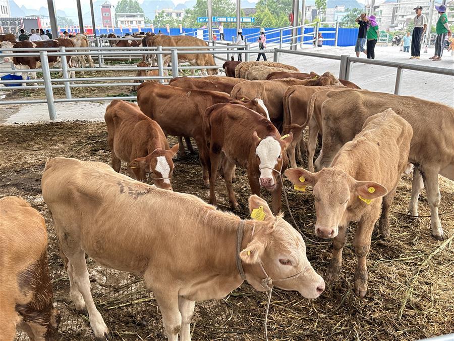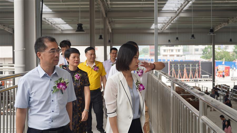 活動現(xiàn)場,熱鬧非凡,大家參觀了農(nóng)特項(xiàng)目園區(qū)及桂中牛行,并對園區(qū)今后的發(fā)展提出了意見和建議。桂中牛行作為農(nóng)特項(xiàng)目園區(qū)內(nèi)的首個(gè)主力商家,主營活牛羊交易,副營馬、驢、騾子等草食動物交易。試業(yè)當(dāng)天,牛群“哞哞”聲此起彼伏,一頭頭體格健壯的牛兒一字排開,人們?nèi)宄扇旱貒墼谝黄?,仔?xì)挑選著心儀的牛兒。一旁的牛崽交易市場內(nèi),買家更是爭相搶購體態(tài)良好的牛崽,市場交易紅火。