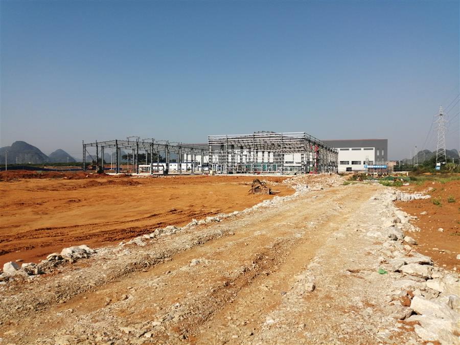 目前,該項目設(shè)備房消防水池外架搭設(shè)、模板安裝已完成,4號廠房側(cè)面檁條安裝完成,5號廠房屋面檁條安裝完成50%,6號樓基礎(chǔ)承臺已完成,4號樓地基處理注漿完成70%等。
