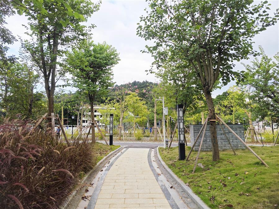 項目總建筑面積約2.7萬平方米,為一座兩層局部覆土式地上停車庫,建設內容包含停車場、地面廣場鋪裝及綠化、給排水、電氣、消防等附屬工程。項目建成將新增600個機動車位,其中負二層510個機動車位,負一層78個有充電樁的新能源停車位,屋面12個無障礙車位;另外,停車庫屋面設有283個非機動車位。綠地率為60%。停車場內部空間寬敞明亮,外觀看像是地下停車庫,但實際上由于該區(qū)域地勢較低,為合理規(guī)劃,特意將停車庫設計為地上兩層局部覆土式停車庫,即在停車庫上方回填泥土,在泥土上種植綠化樹木,將車庫上方裝點成一個小公園。項目交付運營,有效緩解三門江森林公園周邊“停車難”問題。