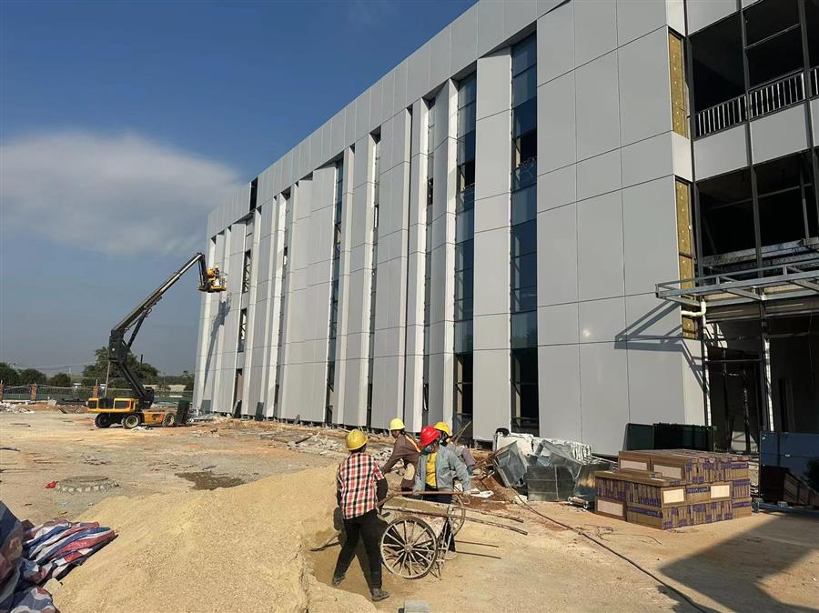 目前,項(xiàng)目1#聯(lián)合廠房外立面均已完成,室內(nèi)消防、鋼結(jié)構(gòu)等均已安裝完畢,暖通以及水電工程、室內(nèi)燈具、器具等正在安裝中。庫房、門衛(wèi)室主體結(jié)構(gòu)已完成、室內(nèi)燈具、器具等正在安裝中。