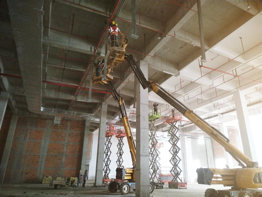 雨天巧干、晴天大干。項目部制定周密、科學的施工計劃,提前做好應(yīng)急預(yù)案,每天根據(jù)天氣變化對工作時序、應(yīng)對措施、安全保障等情況進行逐一落實,充分利用好天氣窗口期,因時制宜,在保障安全作業(yè)的前提下,推進穿插施工,盡一切可能搶抓進度,將攻堅再加速。目前,各樓棟水電消防完成90%,外墻膩子和外墻漆施工完成過半,窗玻璃安裝完成60%,內(nèi)墻膩子完成80%;生產(chǎn)車間真石漆施工完成60%,49-61軸鋁板幕墻安裝完成15%,49-61軸二層金剛砂地坪完成30%,屋面卷材防水完成90%,屋面防水砼保護層完成60%;宿舍樓外墻裝飾線條完成80%,綜合樓外墻裝飾線條完成70%;室外管網(wǎng)路基施工完成40%。項目累計完成施工產(chǎn)值4.2億元,完成合同造價的82%。