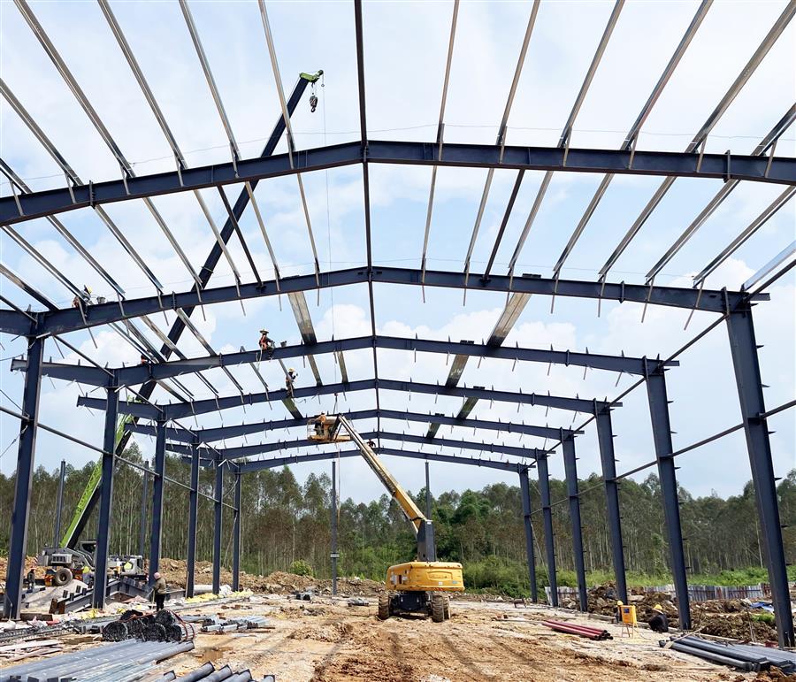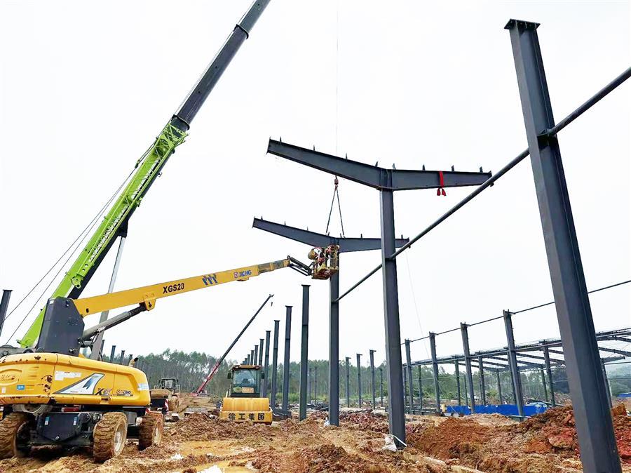 項目開工以來,為加快建設(shè)進度,項目部嚴(yán)格按照公司相關(guān)要求進行施工管理,克服重重困難,制定科學(xué)的施工組織計劃,由專員監(jiān)督指揮施工。該項目占地面積約2萬平方米,總建筑面積1.2萬平方米,主要建設(shè)一棟鋼架結(jié)構(gòu)標(biāo)準(zhǔn)廠房,配套建設(shè)道路、圍墻、綠化、電氣、消防及給排水等設(shè)施。目前已完成基礎(chǔ)承臺及地腳螺栓的預(yù)埋,鋼結(jié)構(gòu)安裝完成40%,配套建設(shè)施工內(nèi)容完成30%。