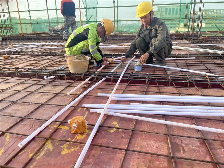 為搶抓項(xiàng)目建設(shè)黃金期,項(xiàng)目部組織全體管理人員堅(jiān)守崗位,進(jìn)一步優(yōu)化施工組織設(shè)計(jì),嚴(yán)格管控施工安全、質(zhì)量,會(huì)同業(yè)主、監(jiān)理單位加班加點(diǎn)忙建設(shè),全力保障項(xiàng)目建設(shè)按照既定時(shí)間節(jié)點(diǎn)推進(jìn)。截至目前,已完成生產(chǎn)調(diào)度用房1-4層主樓框架施工和水泵房底板防水施工。