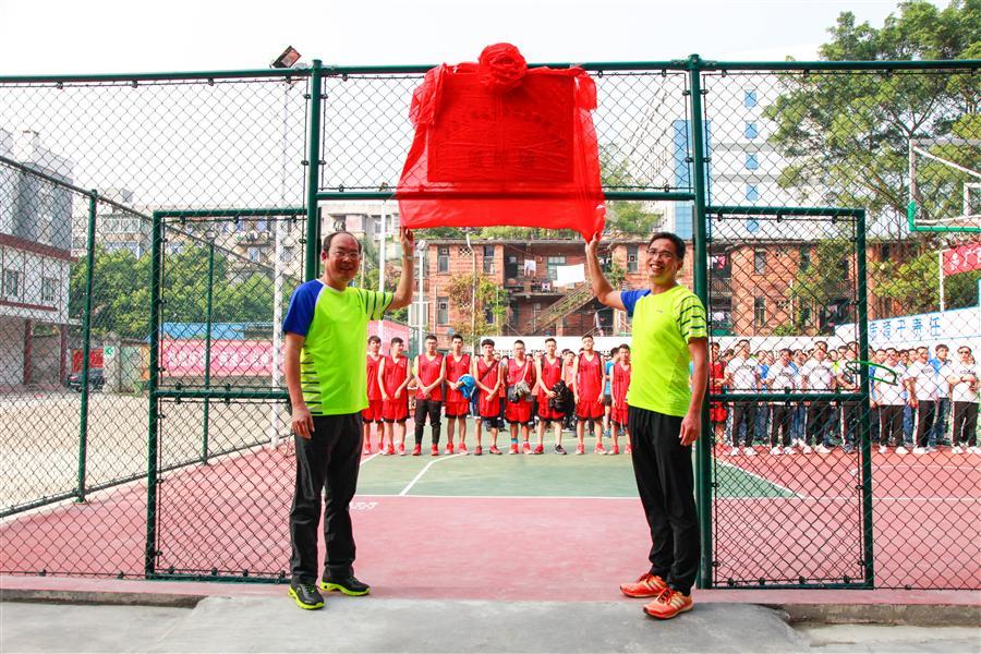 集團(tuán)公司劉副主席與歐總經(jīng)理共同為籃球場揭牌