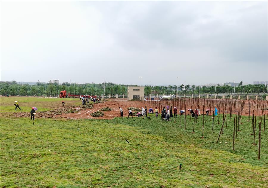 搶晴天、戰(zhàn)雨天,無問天氣、只爭工期。團(tuán)結(jié)拼搏、決戰(zhàn)決勝的毅力和斗志,在這個項目上得到充分體現(xiàn),市政道路和給排水、強弱電、圍墻、園林景觀、綠化、亮化等分部分項工程在1606畝的場地上全面鋪開。