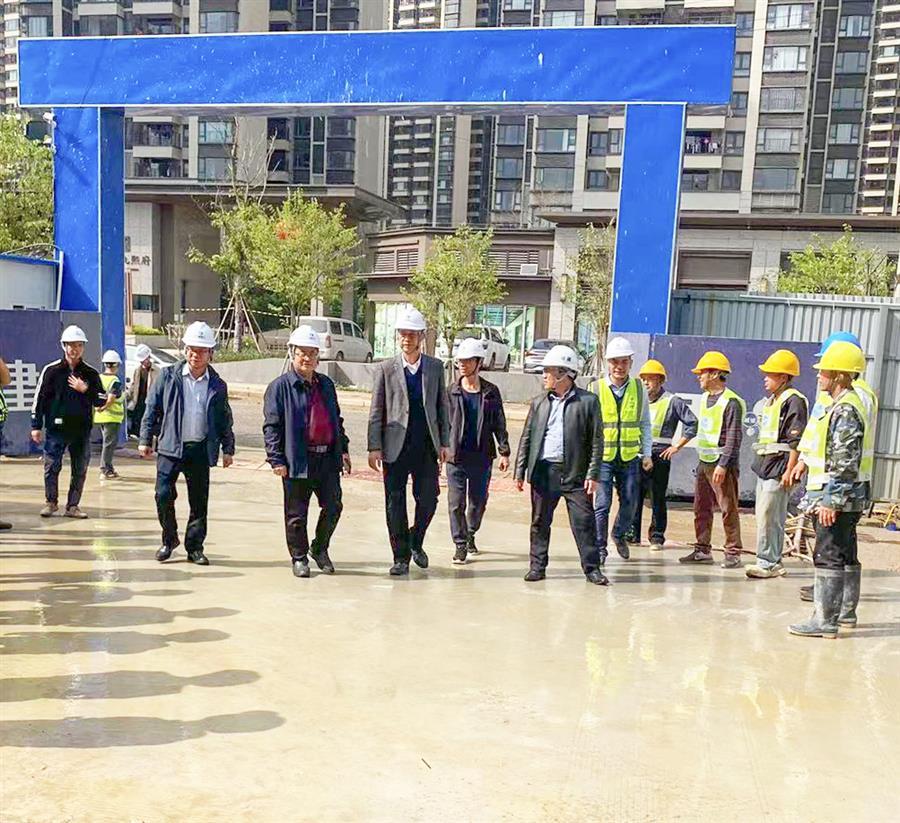 在聽取分公司及項目部的匯報后,何勇深入項目施工現(xiàn)場,認(rèn)真查看了落地式腳手架、臨時用電、模板支架、安全文明施工等情況,并對項目的建設(shè)進度表示肯定。