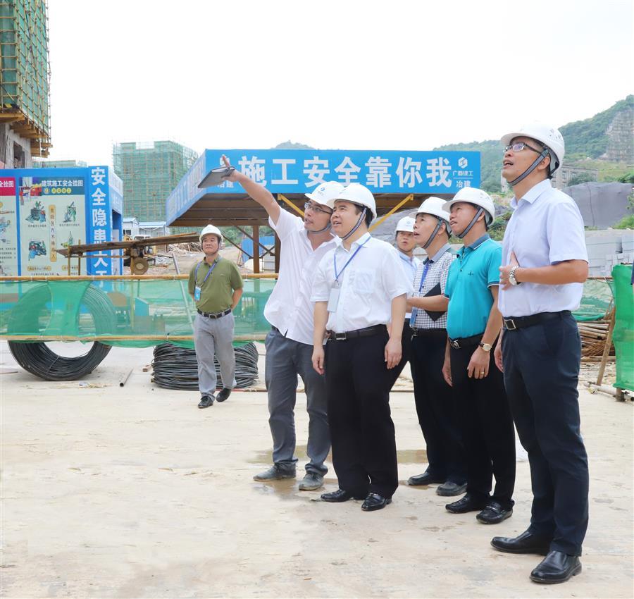 7月6日,廣西建工集團有限責(zé)任公司副總經(jīng)理陳禮松率檢查組到廣西建工集團冶金建設(shè)有限公司承建的麗景嘉苑1#~9#樓及地下室、社區(qū)衛(wèi)生服務(wù)中心項目開展2018年上半年安全生產(chǎn)大檢查,冶建公司黨委書記、董事長歐志永陪同檢查。