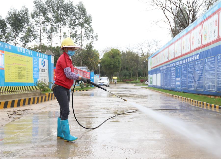 工人對項(xiàng)目現(xiàn)場進(jìn)行清潔
