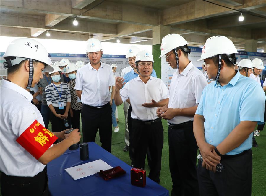 活動中,龍杏華首先表示,此次觀摩會是來賓市近年來舉辦過水平最高的一次觀摩會,感謝廣西建工冶建公司以及現(xiàn)場管理人員的努力付出,大家秉承工匠精神建設(shè)出了工程質(zhì)量優(yōu)、安全文明標(biāo)準(zhǔn)高的示范項目。隨后,龍杏華還宣講了習(xí)近平總書記關(guān)于安全生產(chǎn)的重要論述,并對下一步工作提出三點要求。一是高度重視,強(qiáng)化學(xué)習(xí),提高安全生產(chǎn)理論基礎(chǔ)。全市住建系統(tǒng)、各建筑企業(yè)要扎實開展安全生產(chǎn)警示教育學(xué)習(xí)和典型事故案例警示宣講活動,督促行業(yè)從業(yè)人員深刻汲取事故教訓(xùn),提高安全防范意識、風(fēng)險辨識能力和應(yīng)急處置能力,督促企業(yè)相關(guān)責(zé)任人強(qiáng)化安全生產(chǎn)紅線意識和底線意識,確保安全生產(chǎn)。二是深刻吸取事故教訓(xùn),全面做好建筑施工安全生產(chǎn)工作。要強(qiáng)化建筑施工預(yù)防坍塌、防墜落事故專項檢查;強(qiáng)化企業(yè)安全生產(chǎn)主體責(zé)任落實;強(qiáng)化建設(shè)工程行業(yè)主管部門監(jiān)管責(zé)任落實;強(qiáng)化對建筑施工事故依法嚴(yán)肅查處;強(qiáng)化安全生產(chǎn)和文明施工宣傳教育培訓(xùn);切實做好汛期和夏季消防安全工作。三是繼續(xù)推進(jìn)“一金七制”,全面做好建筑領(lǐng)域治欠保支各項工作。要繼續(xù)推進(jìn)“桂建通”平臺應(yīng)用;全面梳理排查,健全完善在建工程項目臺賬;要健全根治機(jī)制,加強(qiáng)部門協(xié)同配合。