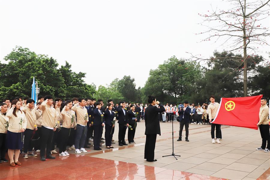 默哀后,全體團(tuán)員青年右手舉拳,面對(duì)鮮紅的團(tuán)旗和巍峨的烈士紀(jì)念碑重溫入團(tuán)誓詞,以青春之聲向烈士莊重承諾,繼承先烈遺志,立足本職,用青春力量助推高質(zhì)量發(fā)展。