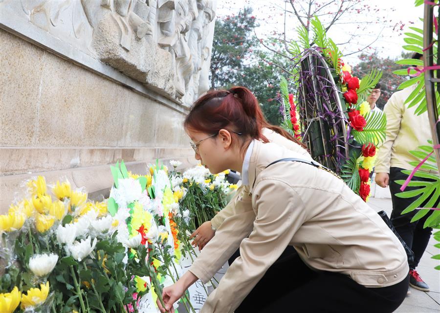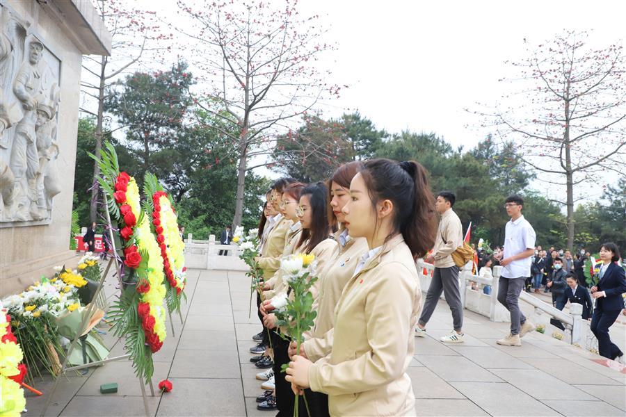 宣誓后,團(tuán)員青年在烈士陵園開展《學(xué)史愛國(guó) 青年力行》主題微團(tuán)課,回顧中國(guó)共產(chǎn)黨帶領(lǐng)人民群眾浴血奮戰(zhàn)、進(jìn)行艱苦卓絕斗爭(zhēng)的革命歷程,追憶崢嶸歲月,緬懷革命英烈,致敬百年征程。隨后,團(tuán)員青年有序來到烈士紀(jì)念碑基座前,瞻仰紀(jì)念碑,將一朵朵鮮花整齊擺放在紀(jì)念碑基座上,向烈士致以崇高的敬意。