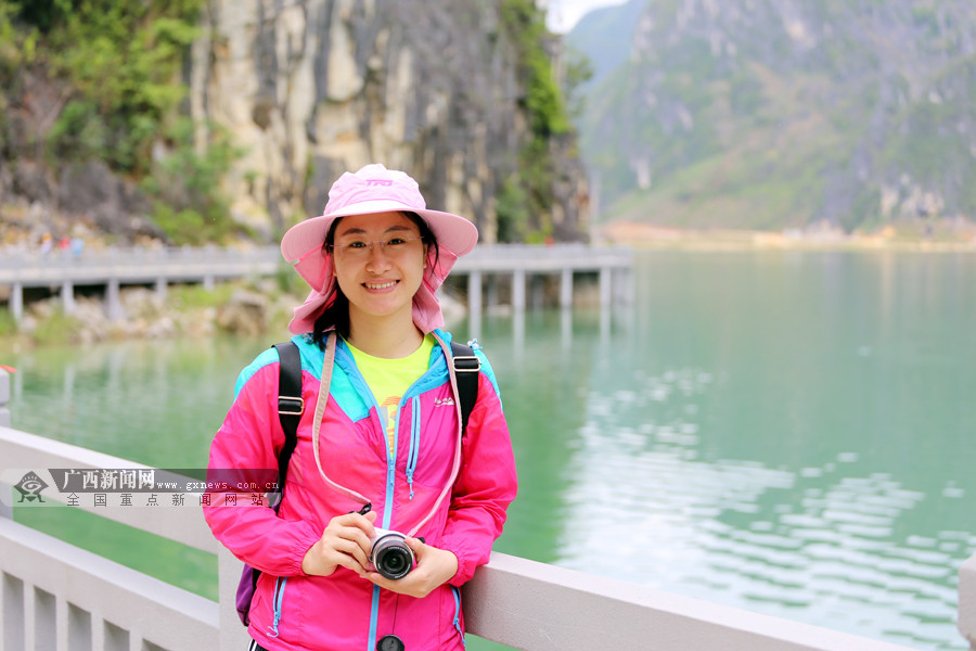 2017年4月22日,黃文秀與記者一起在凌云縣采訪時留下的照片。 記者 陳 強(qiáng) 攝