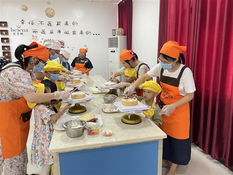 活動現(xiàn)場,家長和孩子們聆聽了紅色詩歌朗誦,現(xiàn)場共同繪制了主題畫作。并在講解員的帶領(lǐng)下參觀了中央工廠,了解了糕點(diǎn)生產(chǎn)過程。參觀后,大家一起觀看專業(yè)糕點(diǎn)師的現(xiàn)場教學(xué)并體驗(yàn)了蛋糕制作。一個小時后,一個個造型別致、想象奇特、富有童趣的親子蛋糕新鮮出爐。家長與小朋友們手捧自己制作的蛋糕拍照,現(xiàn)場氛圍其樂融融。